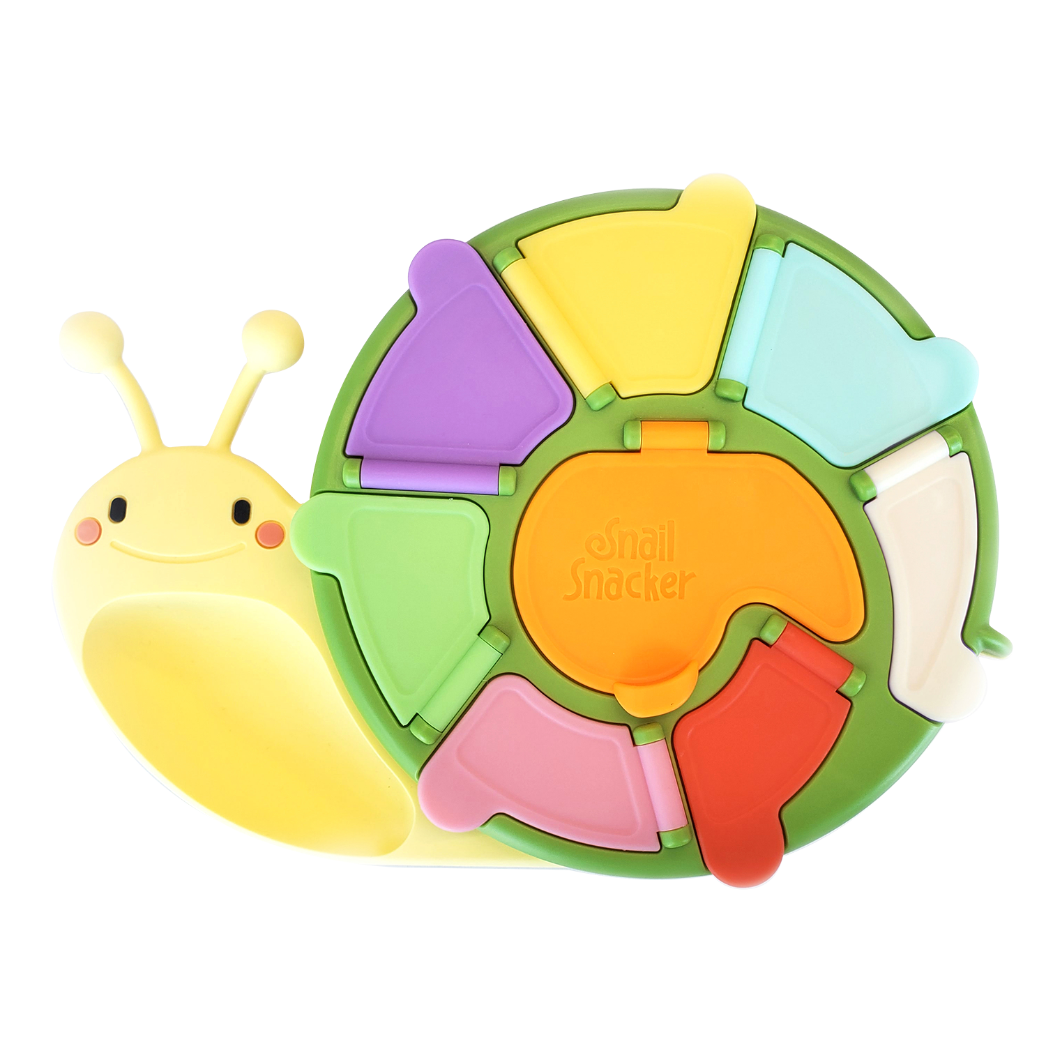 The snail snacker provides an independent learning experience for young kids while enjoying nutritious snacks. The clicking lids and hidden treats encourage young kids to recognize color and train their fine motor skills.